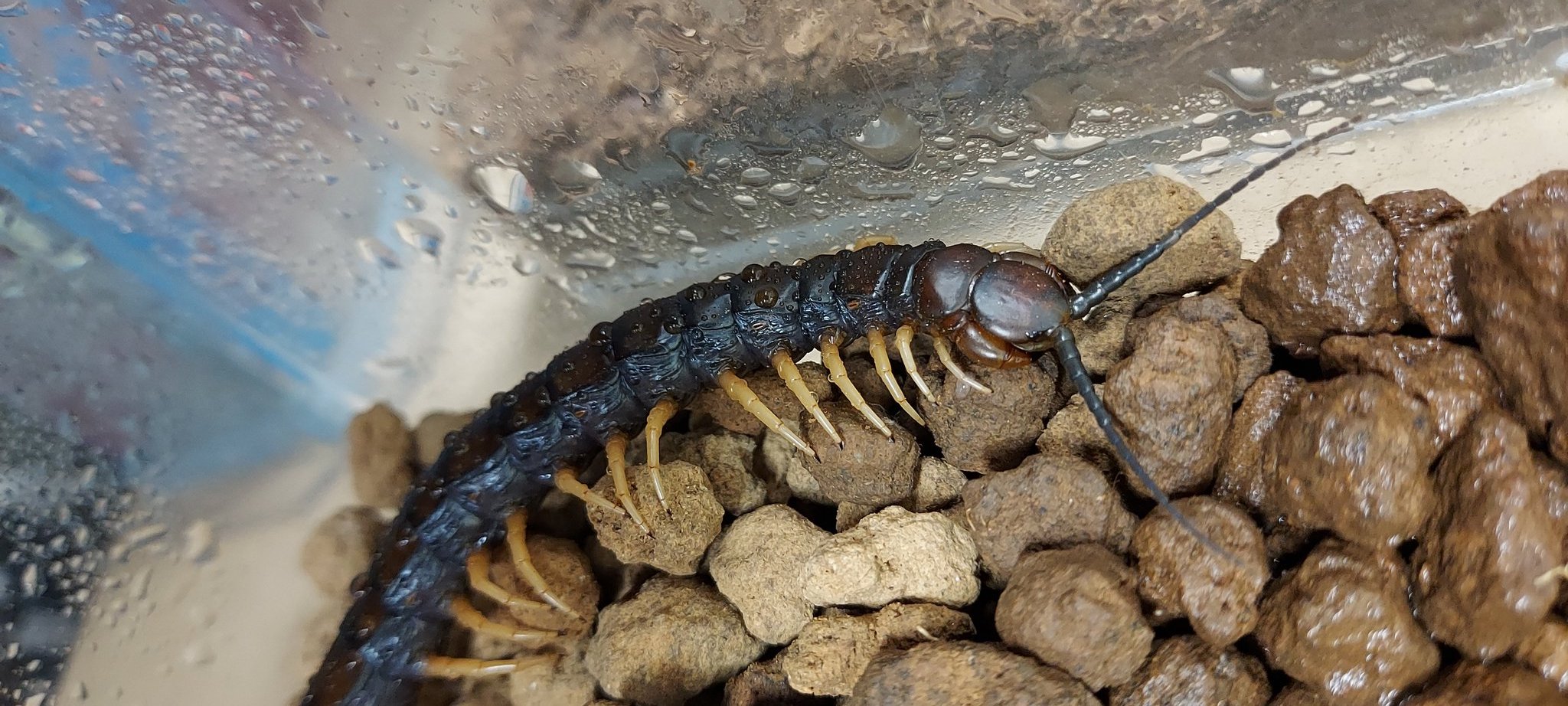 たっくん この前めちゃめちゃダニが付いてたユンナンブラックテールさん あれから毎日床材交換していつもより入念に糞と食べカスを取り除いてたらほとんどいなくなってた でもあと数日はこの作業繰り返します 白い点がチラチラ見えてますが 赤玉土